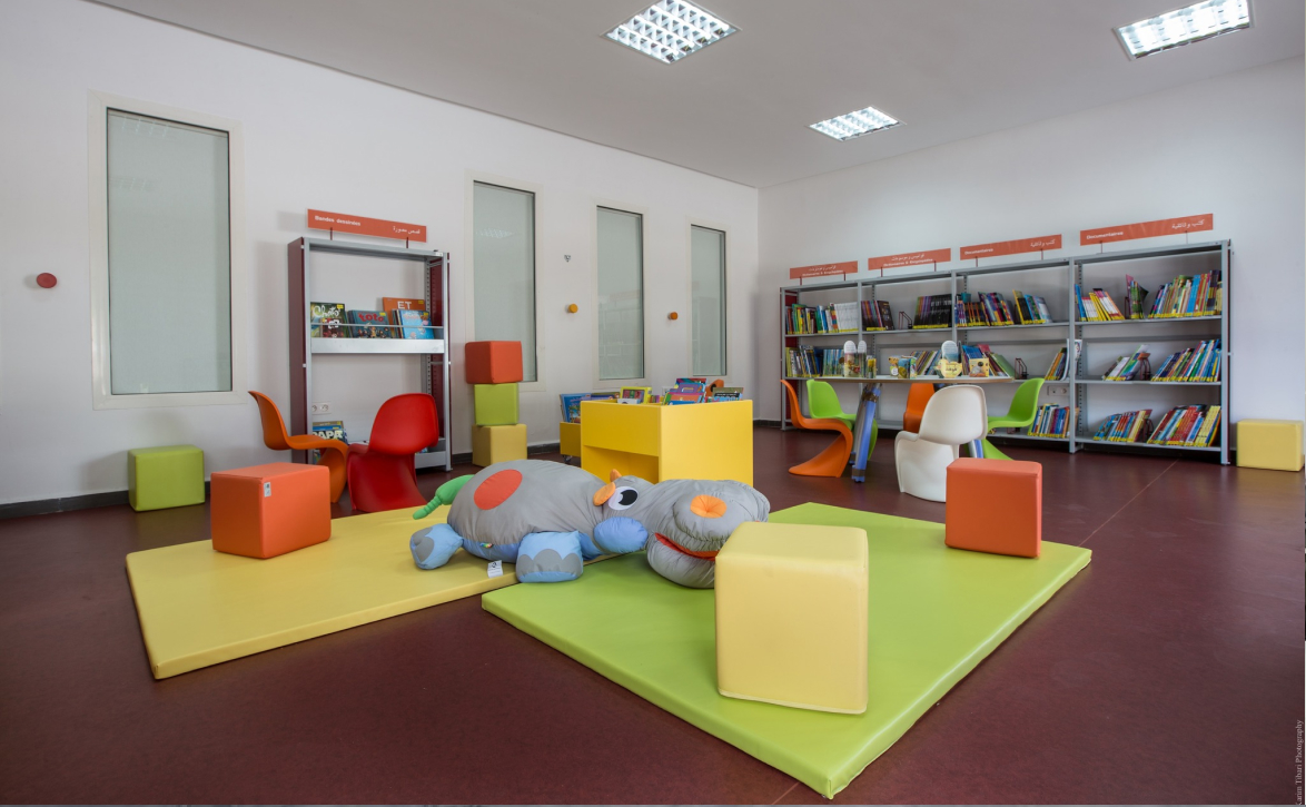 يشتمل المركـــز علـــى فضـــاءات للتوثيـــق والقـــراءة، والتنشـــيط و العـــرض لـــكل الأعـــار.